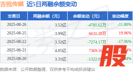 本站消息,8月26日,吉视传媒(601929)融资买入1.3亿元,融资偿还1.77亿元,融资净卖出4701.62万元,融资余额3.52亿元,近20个交易日中有14个交易日出现融资净买入。